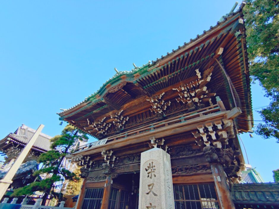 柴又帝釈天(しばまたたいしゃくてん)は、1629年(寛永6年)に創建。下総中山法華経寺の第19世・禅那院日忠が、弟子である題経院日栄とともに開山したと伝えられています。 日栄上人が柴又に寄った際、見事な枝ぶりのマツと、その下に霊泉が湧いているのを見つけ、この地に庵を設けたことがその始まりとされています。正式には経栄山題経寺(きょうえいざん だいきょうじ)であり、日蓮宗の寺院です。