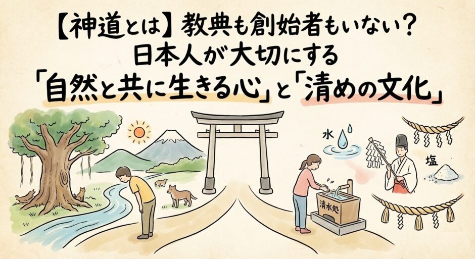 「神道」とは、実は宗教というよりも、私たち日本人が古くから大切にしてきた「自然への畏敬」や「清らかさ」を求める感覚そのものと言えるかもしれません。 今回は、難しい教義の話ではなく、なぜ日本人がこれほど神社を大切にするのか、その心の根底にある「神道」の世界観について、わかりやすく解説します。